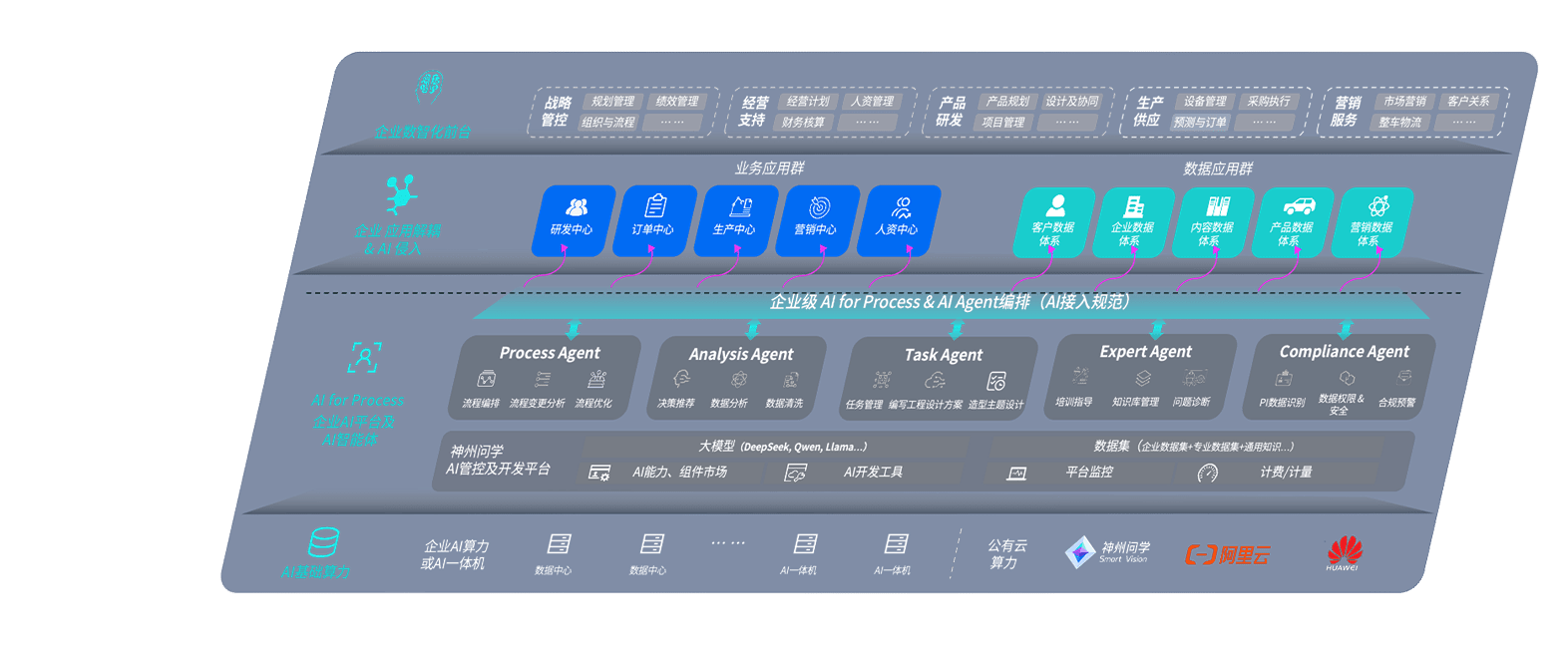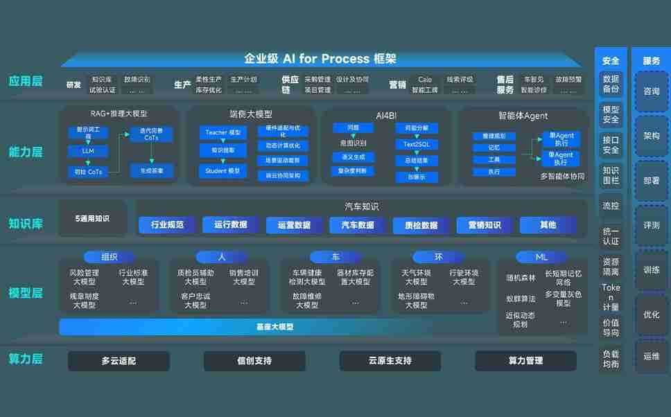 龙门国际问学智车解决方案是一套基于AI技术的汽车行业智能化系统,,,,覆盖从底层算力到顶层AI应用的全栈方案。。。方案由算力层、、模型层和应用层组成:算力层,,,方案支持多种一体机配置,,,具备云端灵活部署、、、、多云适配以及动态优化计算资源的能力;模型层,,,龙门国际问学平台版提供了企业级AI应用一站式构建与管理平台,,,支持基于后训练强化技术的汽车企业专属模型的训练、、、、评测和运营;应用层,,龙门国际问学DeepSeek版提供包括超级员工、、、智能招采、、、智能营销、、、智能客服、、、AI for BI等一系列解决方案,,,,可助力汽车行业实现数字化转型,,,,让管理更智能、、响应更敏捷。。。